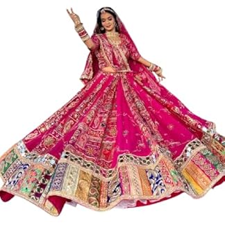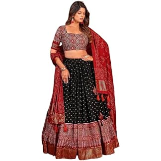 JAIPURI GOTTA PATTI SAREES Womens/Girls Traditional Bandhani Bandej Kota Doria Ready to Wear Lehenga & Dupatta With Unstitched Blouse