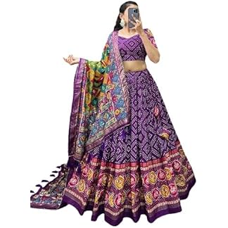 Sarathybiz Navratri Collection Dolla Silk Lehenga Choli Patola Print with Foil Work With Blouse Solid