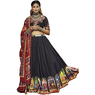 Binali Creation Black Maslin Cotton Traditional Navratri Dandiya Raas Garba Festival Women’s Semi Stitched Lehenga Choli