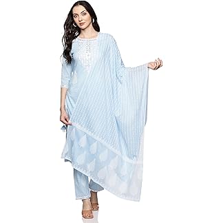 Mollymode Fashion Women’s Indian Salwar Kameez, Kurta Pant Dupatta Set, Blue