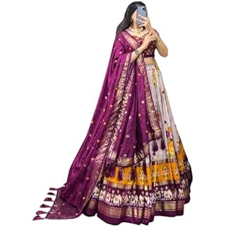 OMEGA ENTERPRISE Women’s Leheriya Patola Print With Foil Work Tussar Silk Lehenga Choli