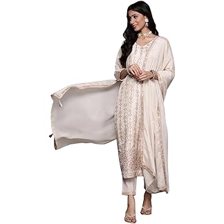 INDO ERA Women’s Pure Cotton Embroidered Calf Length Straight Kurta and Pant with Dupatta Set (KH0WH6159)
