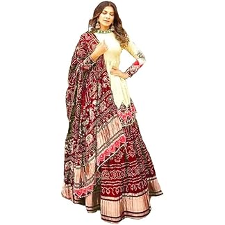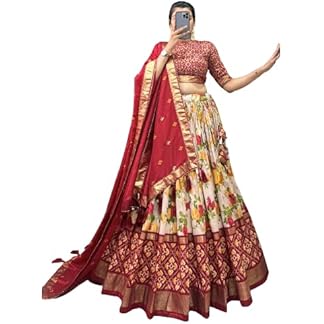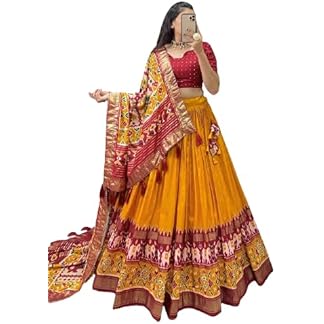 HEM SELLES Women’s Tussar Silk With Patola Print And Foil Work Lehenga choli