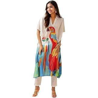 V4M Women’s White Printed Regular Cotton Blend Kurta Sets | Kaftan Set for Women