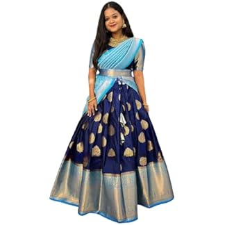 WILLFE Kanjivaram Soft Pure Zari Silk Traditional Lehenga Saree, Unstitched Lehenga Choli, Half Saree.