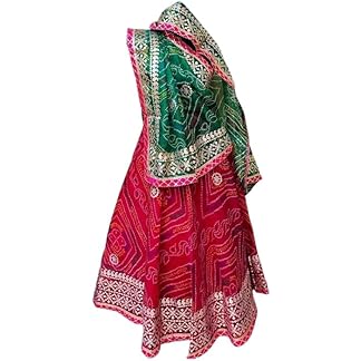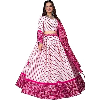 JAIPURI GOTTA PATTI SAREES Womens/Girls Traditional Bandhani Bandej Kota Doria Ready to Wear Lehenga & Dupatta With Unstitched Blouse