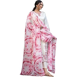INDO ERA White Pure Cotton Printed Straight Kurta & Pant With Dupatta set (KH0WH6163)