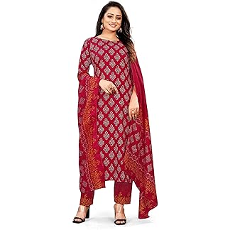 ANNI DESIGNER Women’s Cotton Blend Straight Printed Kurta with Pant & Dupatta