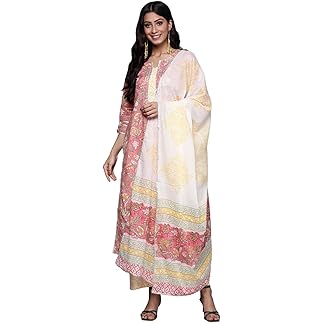 ANNI DESIGNER Women’s Cotton Blend Printed Straight Kurta with Pant & Dupatta
