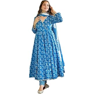 GoSriKi Women’s Cotton Blend Printed Anarkali Kurta with Pant & Dupatta