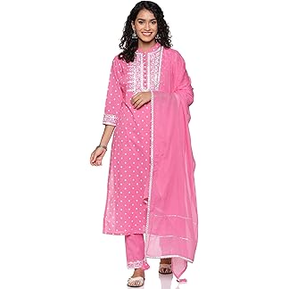 Libas Womens Printed Cotton Straight Kurta With Palazzos and Dupatta