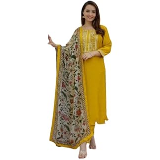 RAJMANDIRFABRICS Women’s Cotton Embroidered Straight Kurta Pant With Dupatta Set