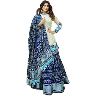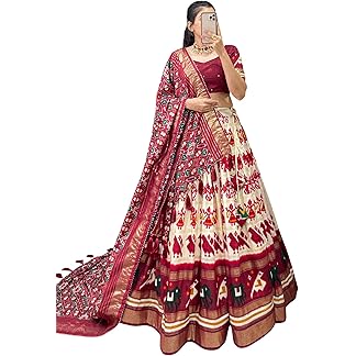 ARPI FASHION Women’s Floral & Patola Print With Foil Work Tussar Silk Ethnic wear Tassels and Zip Closuer Readymade Lehenga Choli With Dupatta (A_F_100524)