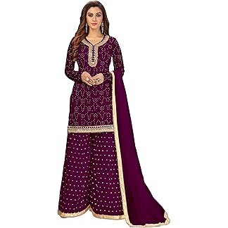 TRENDMALLS Women’s Cotton Embroidery Salwar Suit Set Kurta Sharara with Dupatta Kurta Palazzo Set Stitched Ready To Wear