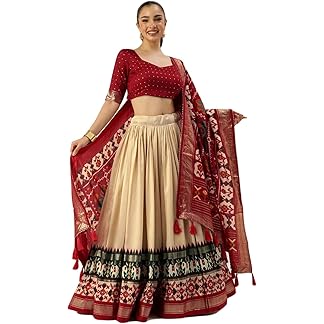 Swara’s Shop Women’s Tussar Silk With Patola Print And Foil Work Lehenga choli