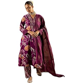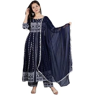 Shantika Women’s Printed Rayon Anarkali Kurta Pant Set With Dupatta