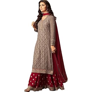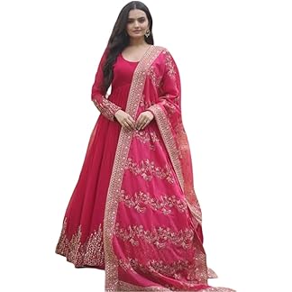 FOXDX Women’s Georgette Traditional Long Embroidered Anarkali Gown Pant with Dupatta Set