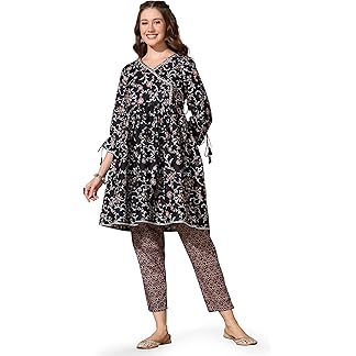 ANNI DESIGNER Women’s Cotton Blend Anarkali Printed Kurta with Pant