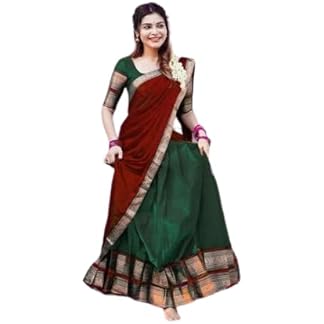 RENVAANI FASHION Women’s Indian Traditional Unstitched Kanjivaram Kanchipuram Silk Pure Zari Weaving Lehenga Choli Along With Dupatta With Unstitch Blouse
