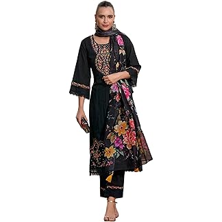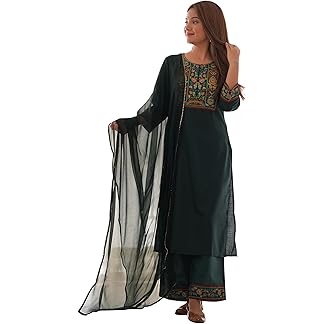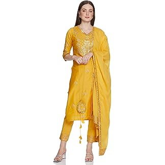 INDO ERA Women’s Embroidered Straight Kurta & Pant With Dupatta Set
