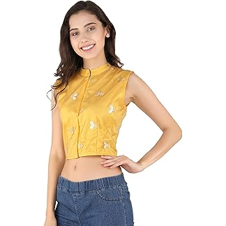 UNFAKENOW Ladies Floral Print Cute Short Cotton net Casual Party Plus Size Fancy Crop top Jacket for Skirt Palazzo Women Sleeveless Indo Western Stylish Saree Readymade Collar Lehenga Blouse