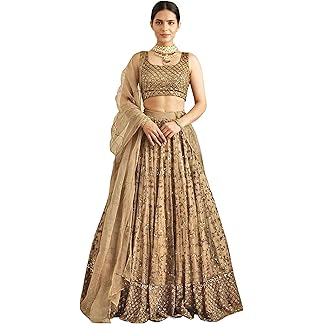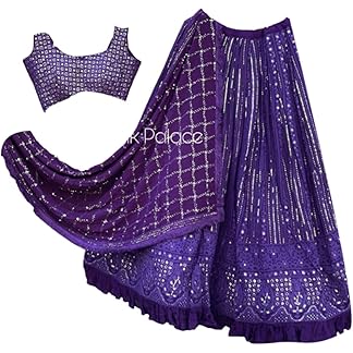 TRENDMALLS Women’s Net Embroidery Sequence Work Lehenga Choli Unstitch Blouse with Dupatta
