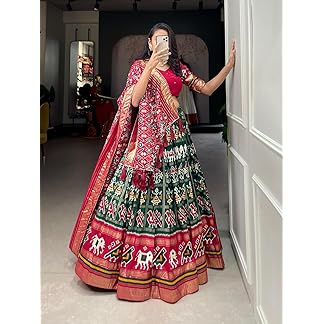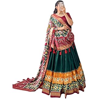 Swara’s Shop Women’s Tussar Silk With Patola Print And Foil Work Lehenga choli