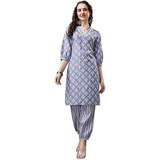 Priyashi Women’s Printed Cotton Blend Kurta & Afghani Pant Set – Trendy Ethnic Ensemble for Stylish Comfort & Chic Appeal