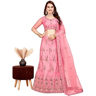 JM_VNT Women Embroidered Net With Satin Blend Ethnic wear Semi-stitched Lehenga Choli With Dupatta Set
