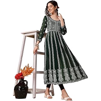 EthnicJunction Women’s Lucknowi Chikankari Embroidered Thread Work Georgette Anarkali Kurta