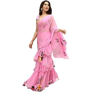 Yashika Womens Women’s Georgette Printed Saree With Blouse Piece (REMY RED)