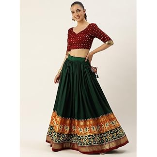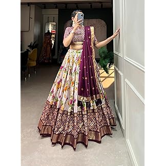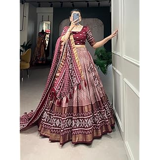 Swara’s Shop Women’s Tussar Silk With Patola Print And Foil Work Lehenga choli