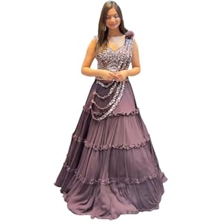 infloura Women’s And Girls Chinon Georgette Fabric With Lehenga With Full-stitch Blouse With Embroidery Coding Work Fancy Belt