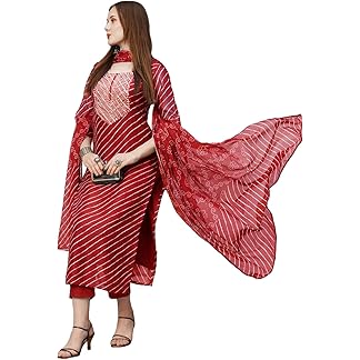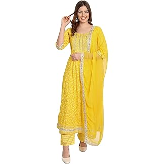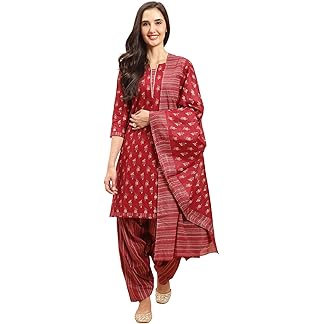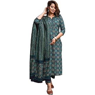 GoSriKi Women’s Cotton Blend Anarkali Printed Kurta with Pant & Dupatta
