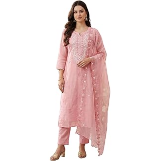IBRANA Women’s South Cotton Embroidery Work Kurta with Pant & Dupatta
