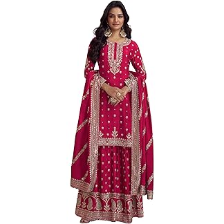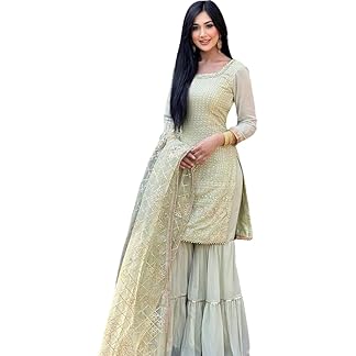 MV SUPER HUB Women’s Faux Georgette Embroidery Salwar Suit Set Kurta Sharara with Dupatta