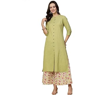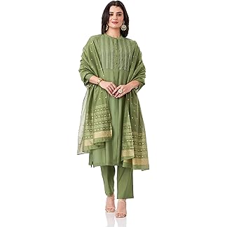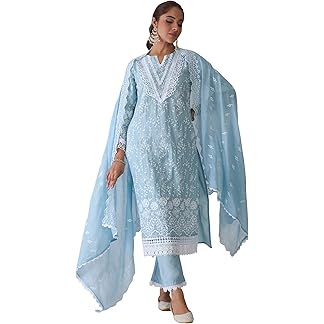 Amazon Brand – Myx Women’s Embroidered Cotton Kurta Pant Set with Organza Dupatta