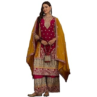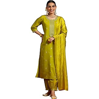 Amazon Brand – Myx Women’s Embroidered Kurta Pant Set with Dupatta