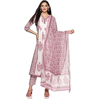 Amazon Brand – Myx Women’s Embroidered Kurta Pant Set with Contrast Dupatta