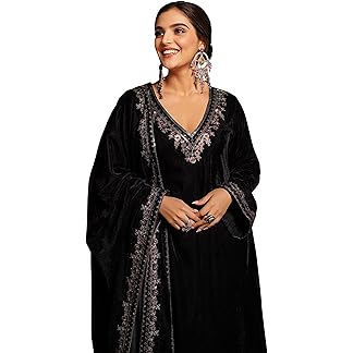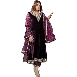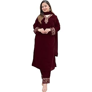 Womens Velvet Kurta Set with Dupatta Velvet Embroidered Full Stitched