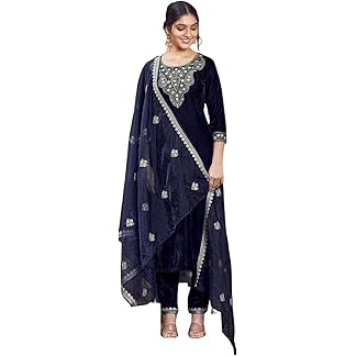 Womens Kurta Set with Dupatta/Womens Kurta Set with Dupatta & Pent Velvet Embroidered Full Stitched