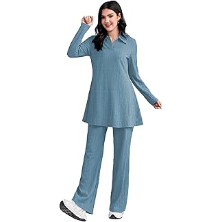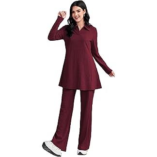 TADKEE Women’s Solid Color Two-Piece Set | Long Sleeve Top & Wide Leg Pants Co-ord Set