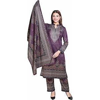 ABODH COLOURS Women’s Unstitched Woolen Salwar Suit and Stole Embroidered, Printed For Winter Wear