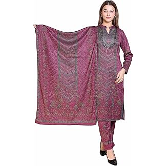 Womens woolen kashmiri suit for women with salwar and shawl winter wear kani unstitched fabric woollen dress material pashmina wool