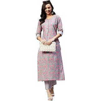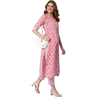 GoSriKi Women’s Cotton Blend Printed Straight Kurta & Pant
