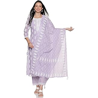 KURTARI Women’s Cotton Anarkali Chikankari Suit with Duptta
