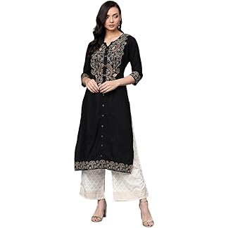 idaLia Rayon Solid Straight Kurta with Palazzo Pant Set – Designer Long Kurta Set, 3/4 Sleeve, Round V Neck, Calf Length
