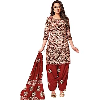 Rajnandini Women Maroon & Beige Cotton Printed Ready To Wear Patiala Salwar Suit (Joplvsmrw5149-P)
