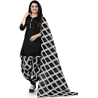 Rajnandini Women Black Cotton Blend Printed Salwar Suit (Ready To Wear_S-Size)