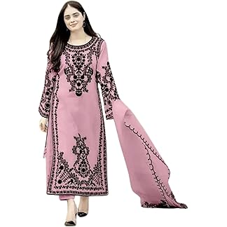 AZMERA Women’s Faux Georgette Embroidery Salwar Suit Set Kurta Sharara with Dupatta